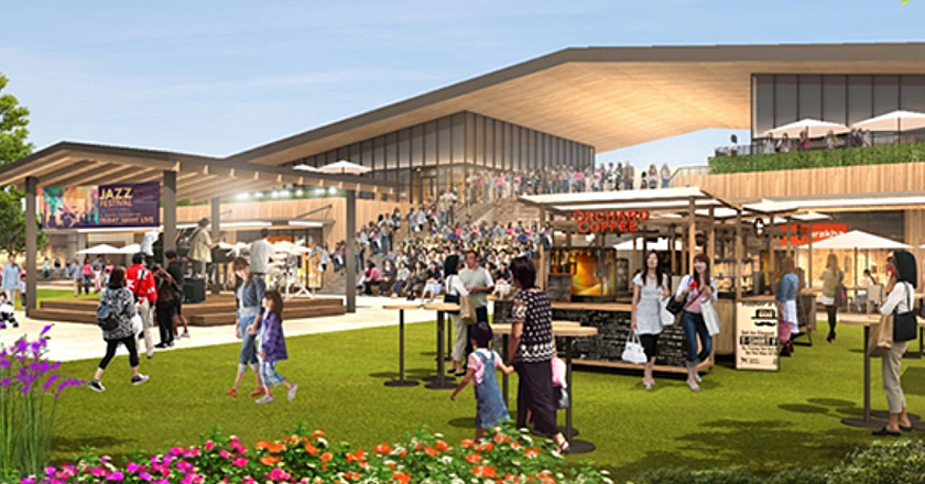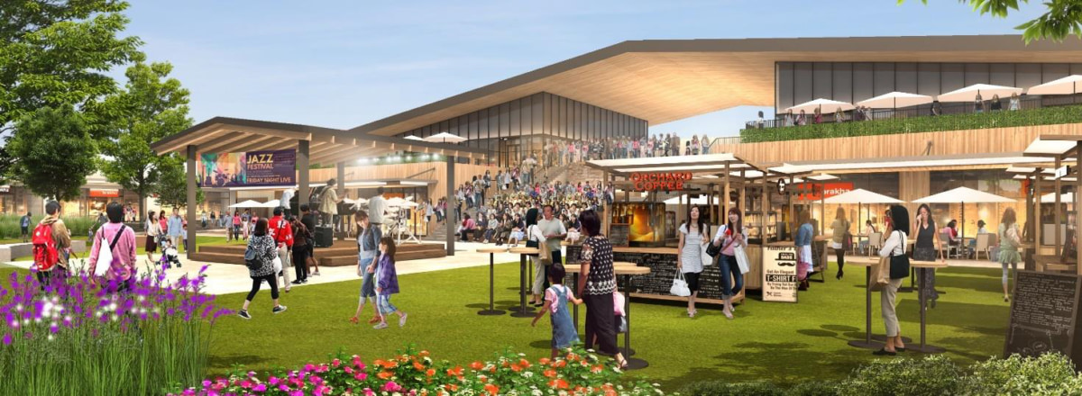 海外ブランドやアウトドア用品、キッズ向けなど約170店舗が入り、イベントに利用できる屋外広場も整備される予定で幅広い世代の集客を目指します。