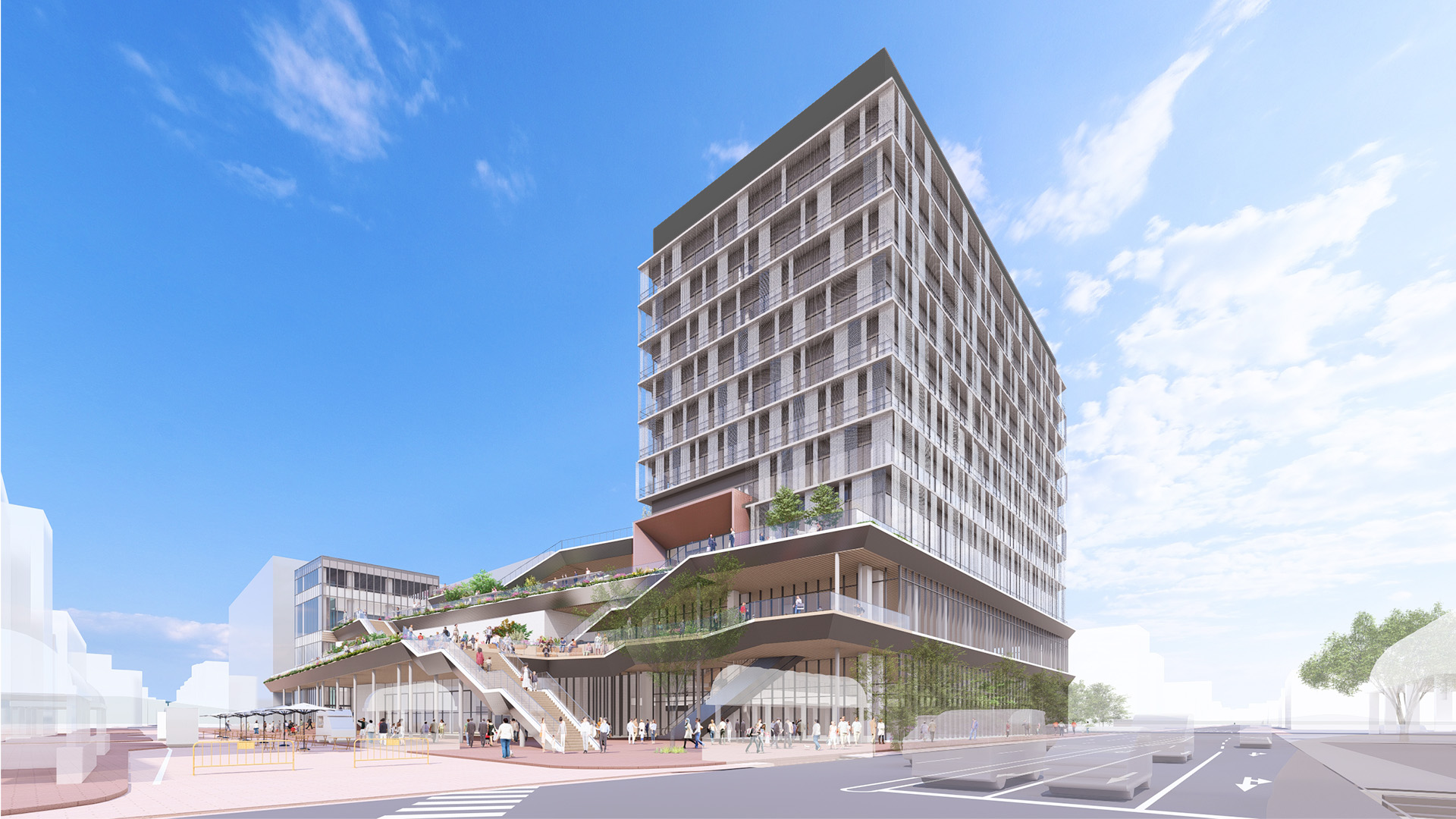 福島駅東口市街地再開発組合(福島市)は、JR福島駅東口前に総延べ面積約72,450㎡の下記施設を計画しています。