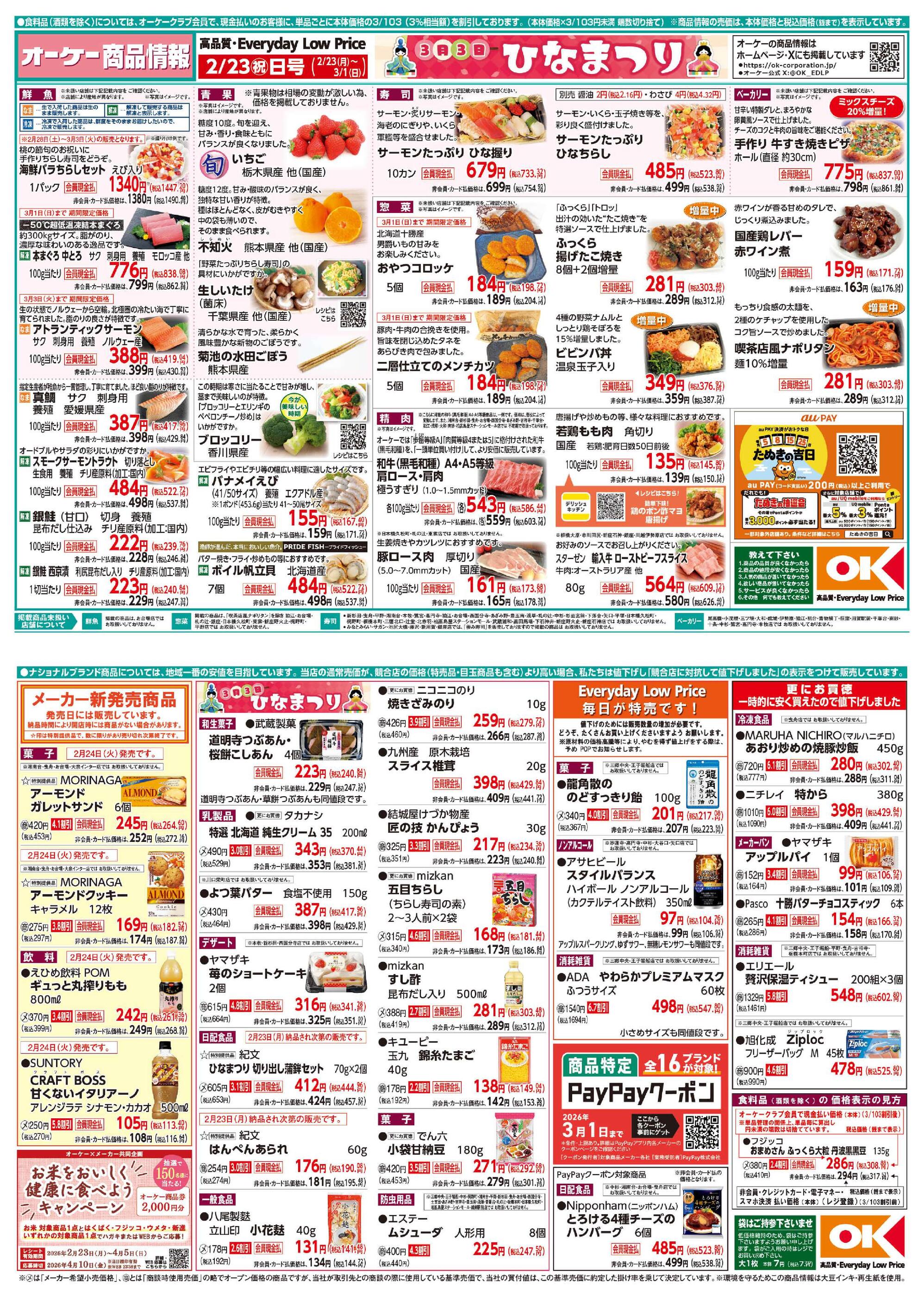 https://ok-corporation.jp/shop/tsujidouhatori.html - オーケー 商品情報紙(関東 2月23日号 PDFへの案内)