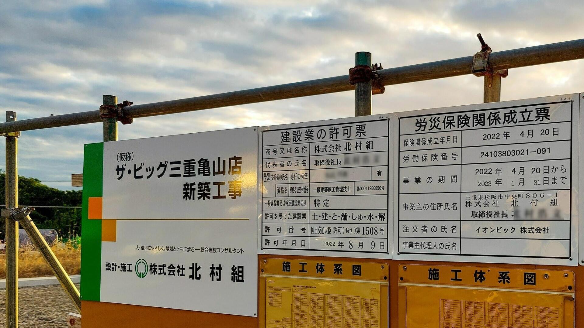 - (仮称)ザ・ビッグ三重亀山店予定地では建物の工事が始まりました!完成時期を確認