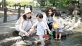 人工の小川や池があり、周辺には木陰もあるため、1歳前後の短時間利用と相性がいいです。