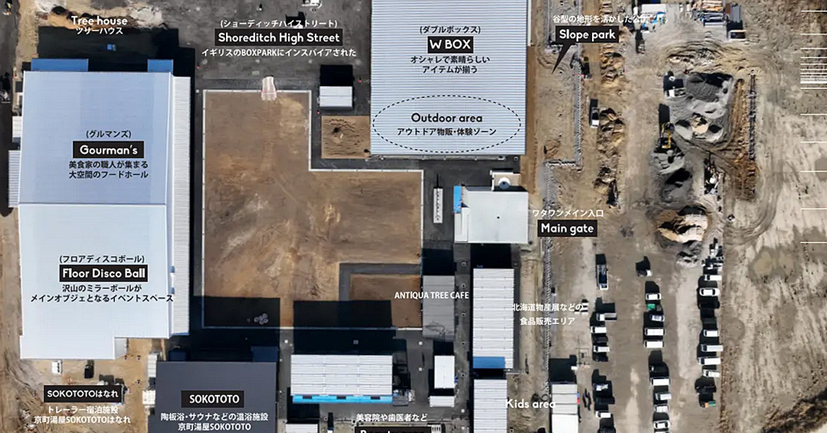 同施設はショッピングや飲食に加え、キャンプやサウナといったアウトドア、ライブなどのエンターテインメントも楽しめる滞在型エンターテインメンモール。2022年に着工し、24年4月にプレオープン、5月にグランドオープンを予定している。